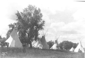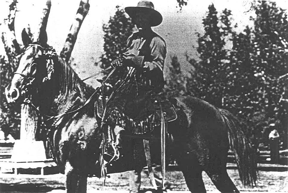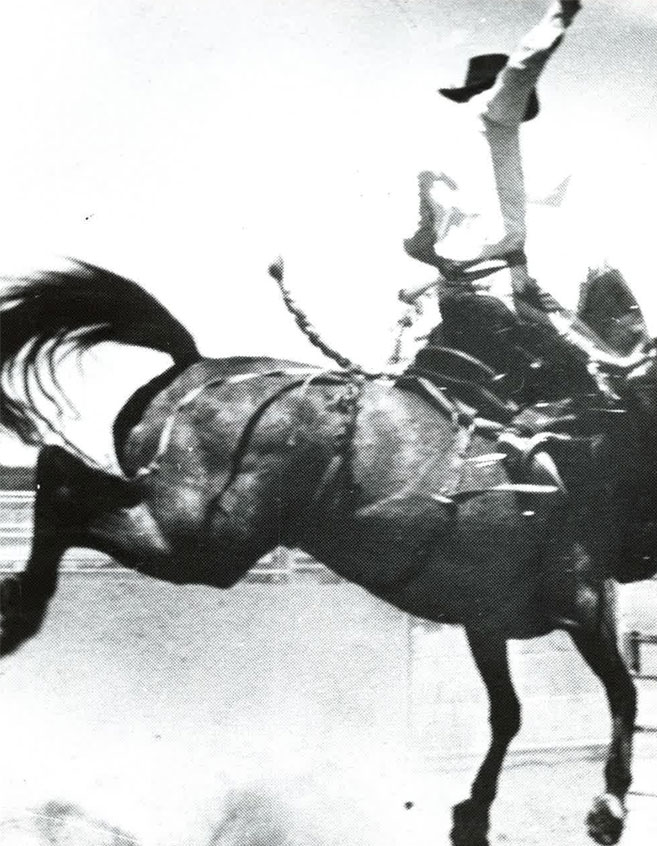 with her fancy trick riding. “Scrap Iron” Jimmy Patch of Miles City, Montana was the rodeo clown. Event winners include Bill Linderman, J. D. McKenna, Buster & Lourie Hayes, Dick Skeen, Hyde Merritt and Mickey McCory. Buffalo riding was featured with Louis Teton riding his mount using only a surcingle. An estimated 1,200 Indians camped east of the railroad tracks.