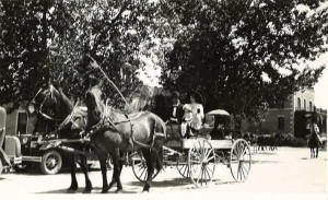 Roping- Van Irvine, Justin McCarthy, Marvin Bell, Vincent & Lourie Hayes and James Wilkerson, roping from an unbridled horse. Bareback bronc riding- Jack David and Forrest Van Tassel and Chet McCarthy won the Brahma Bull riding. Local lad Willard Wilson won the Shetland races. The stone wall surrounding the Hot Springs County Fairgrounds was completed in 1939 in time for the Labor Day “Big Roundup” featuring an Indian Buffalo hunt and Indian Bucking Buffalo Riding. Alice Hayes was the rodeo queen. Col. Tim McCoy was on hand and the Chamber of Commerce took names of people willing to rent rooms to visiting spectators.