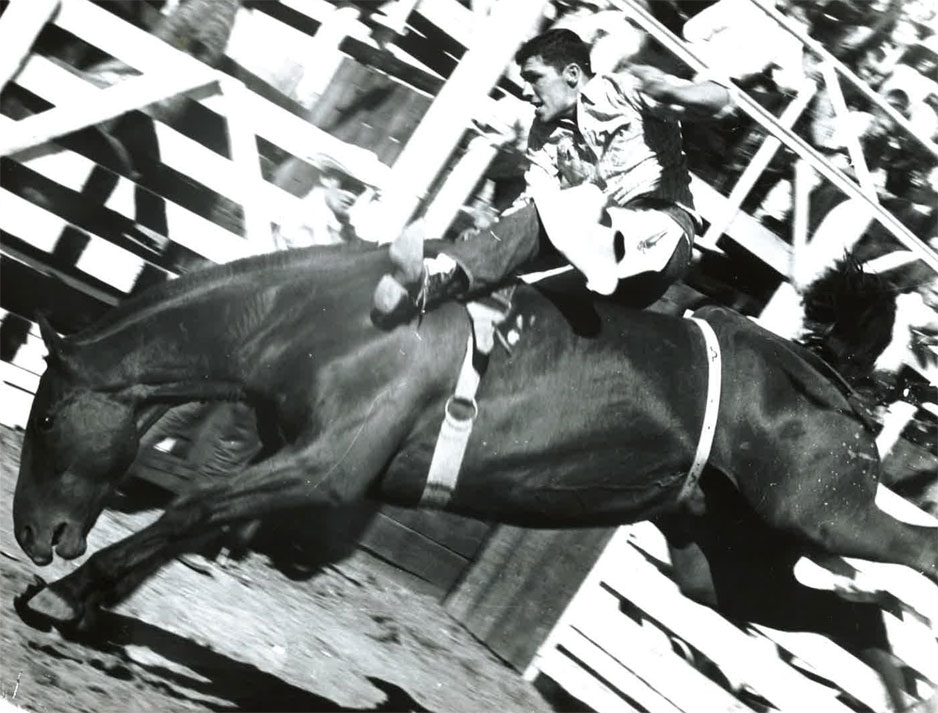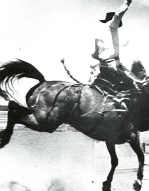 in this section of the country……harin’, tearin’ bunch of devil meat.” Some of the event winners include: Saddle Bronc- Happy Sankey; Bill and Tex Greenough; Bull Dogging- Mickey McCory (time 6.2 seconds) and Bill Greenough; Calf