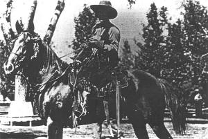 Thirteen years later, grandstand, track and baseball field were built near that same spot, in time for a July 4, 1908 celebration. Purses of $50, $35 and $15 were offered contestants in a bucking contest. Professor Moran furnished stock for the June 6, 1910 rodeo, a celebration the first train engine’s arrival in Thermopolis. Keno and Thermopolis were two of the bucking horses. A man named McConagill rode Keno without saddle or bridle. Hot Springs County was “set aside” in 1911. Officials were elected in 1912, and it became an “official county” in 1913. The same year, L.J. Duhig, chairman and H. M. Hantz, secretary of the Thermopolis Park Association, decided to have horse racing in the county as well as a bucking contest. In 1916, land was to have been given to the town to build a new grandstand, race track and ball park. Movie/t.v. star-to-be, Tim McCoy and son of pioneer ranch family, Robert Price, joined ranks to produce a Wild West/Stampede/Roundup to be held on July 4th. The 1919 “Treat Em Rough” stampede featured a bow and arrow buffalo hunt with one hundred Arapahoe Indians invited to take part. Intervention from the state humane officer changed the event to a one shot rifle hunt. Chief Lone Bear declined the honor of shooter due to failing eyesight. The event was covered by the The Denver Post. A special train brought spectators from Fremont County to see this Wild West show.